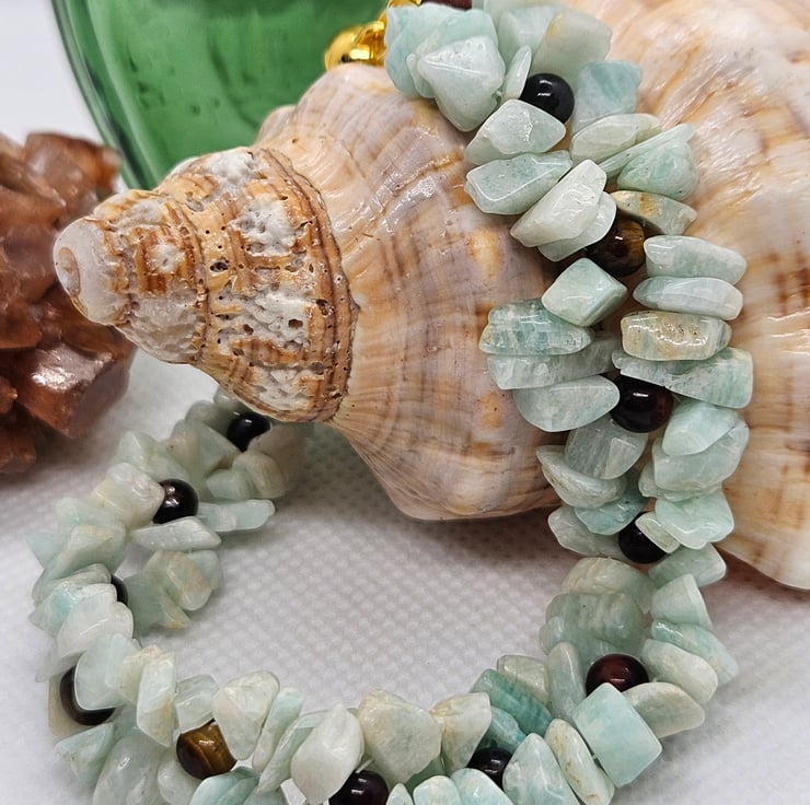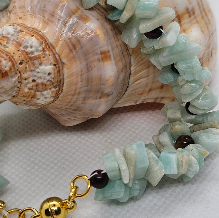 Amazonite Gemstone & Tiger Eye Bracelet with Magnetic Clasp