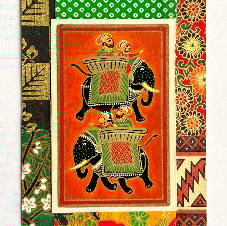 These cards feature pretty collages made using vintage playing cards and small strips of decorative papers. There are touches of metallic gold in the origami papers which adds a bit of sparkle.