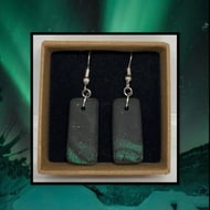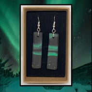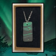 Inspired by the wisps and flows of the green aurora against a black night sky.
