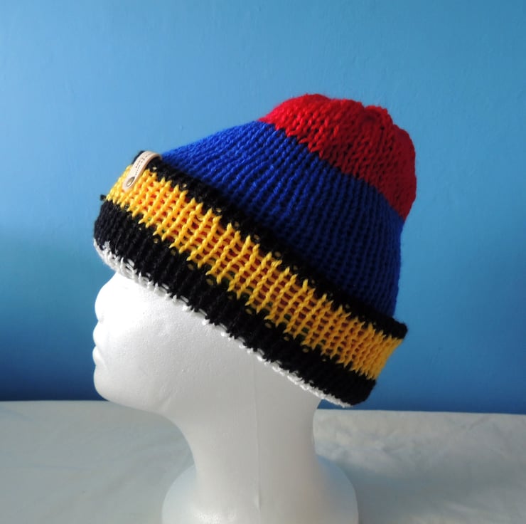 Experience the perfect blend of style and comfort with our hand knitted Woolen Beanie, crafted from 100% soft acrylic. This reversible accessory features a delightful mix of colors, making it a versatile addition to your autumn, spring, or winter wardrobe. Hand-made in the picturesque Forest of Dean, it promises warmth and coziness, ensuring you stay snug during chilly days. Elevate your seasonal look with this essential beanie that combines functionality with artisanal charm.