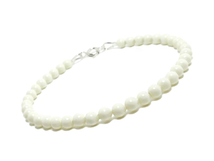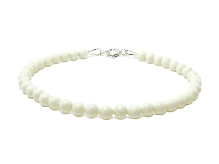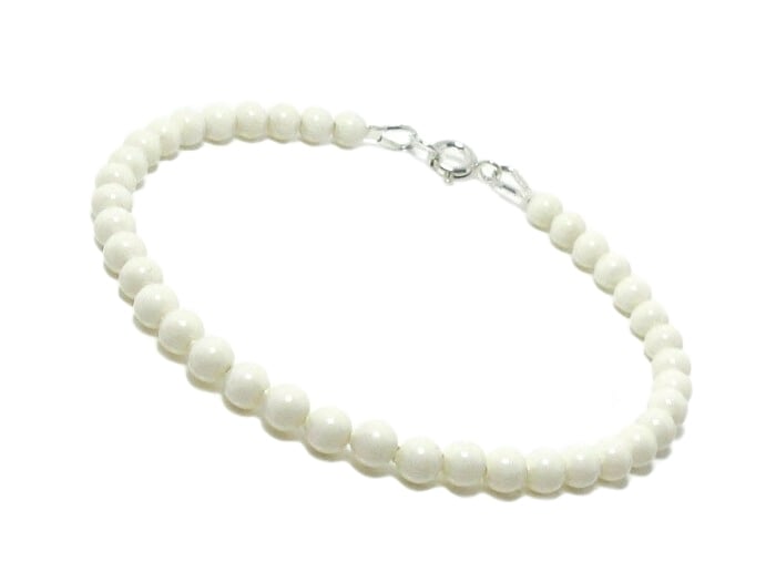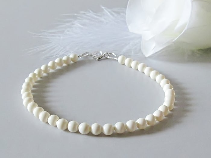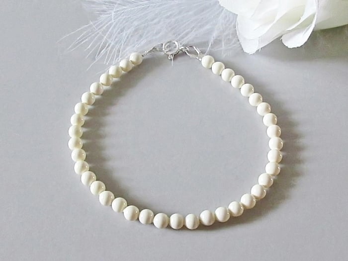 This dainty cream pearl bracelet is handmade with 4mm premium Austrian crystal pearls and genuine .925 Sterling Silver fittings. A slim, minimalist, elegant pearl bracelet perfect for brides, bridesmaids, June birthstone gifts, 30th pearl wedding anniversary presents, or elegant everyday jewellery. This classic pearl bracelet layers beautifully with other delicate stacking bracelets and makes a thoughtful gift for her, whether for a wedding, birthday, anniversary, or special occasion. Designed for timeless style, feminine elegance and effortless wear.