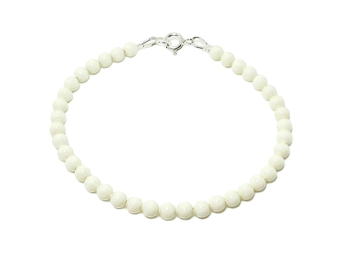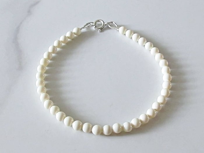 Dainty 4mm cream pearl bracelet handmade with premium crystal pearls from Austria and Sterling Silver.