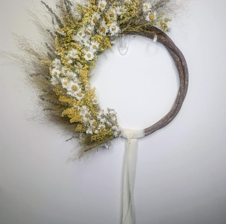 I wanted to create a wreath with the distant memory of summer, to brighten the darker days. To lift spirits and create a warmth and loving energy, to remember brighter times. An uplifting energy to create joy in your spaces.