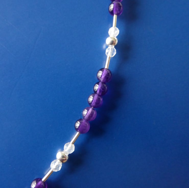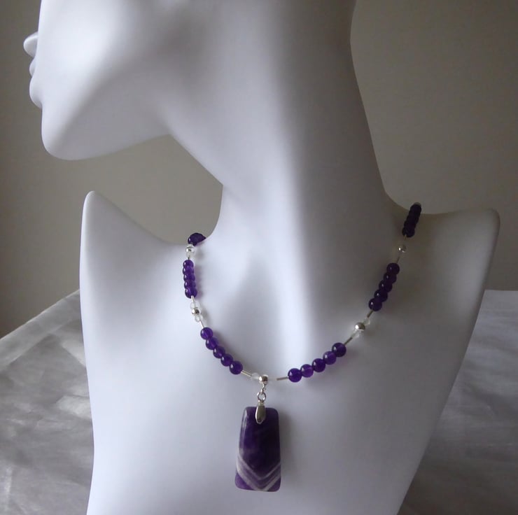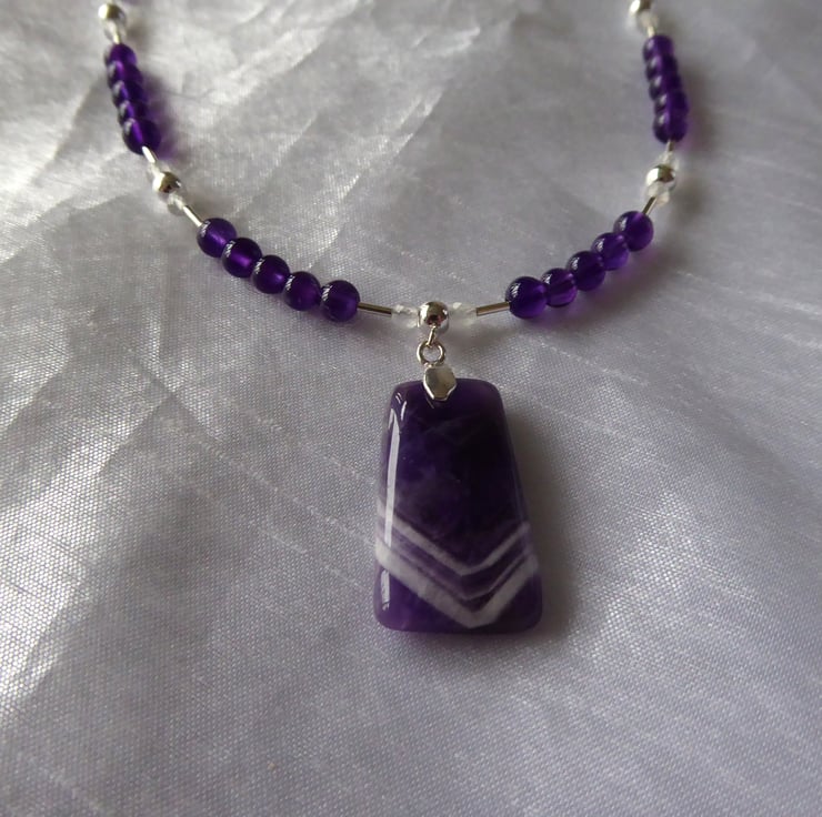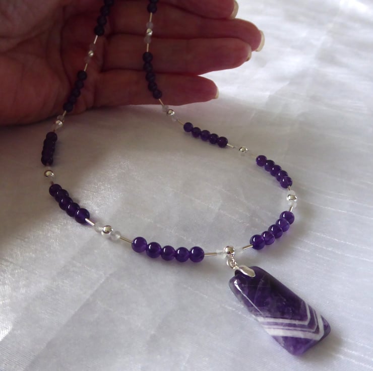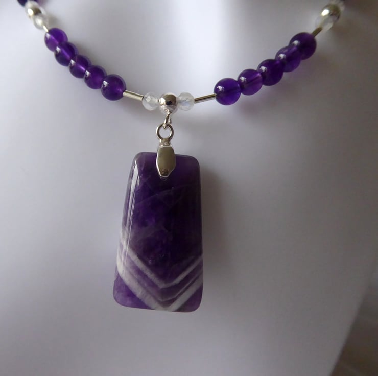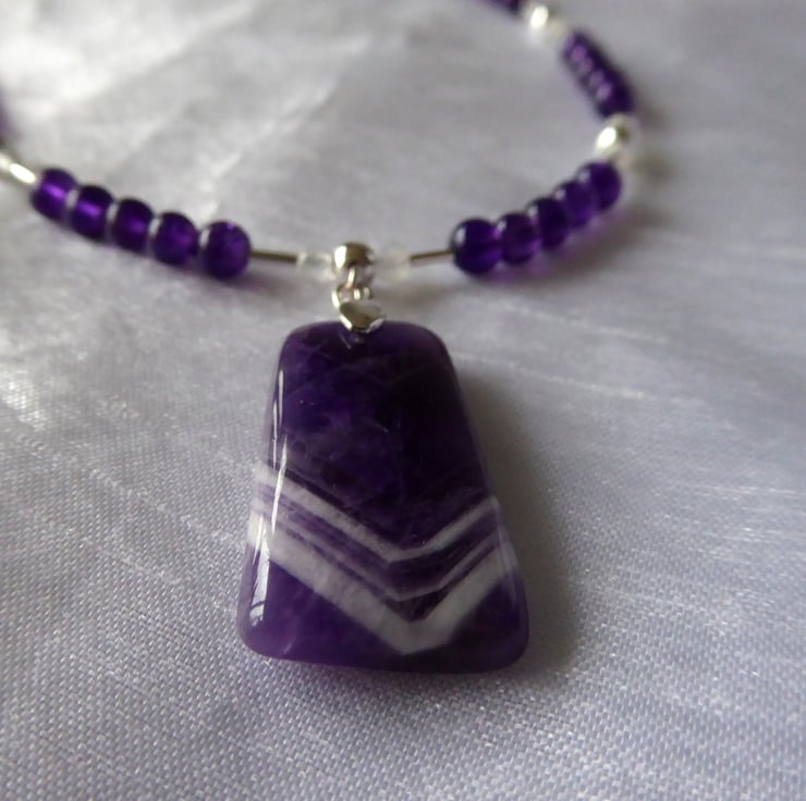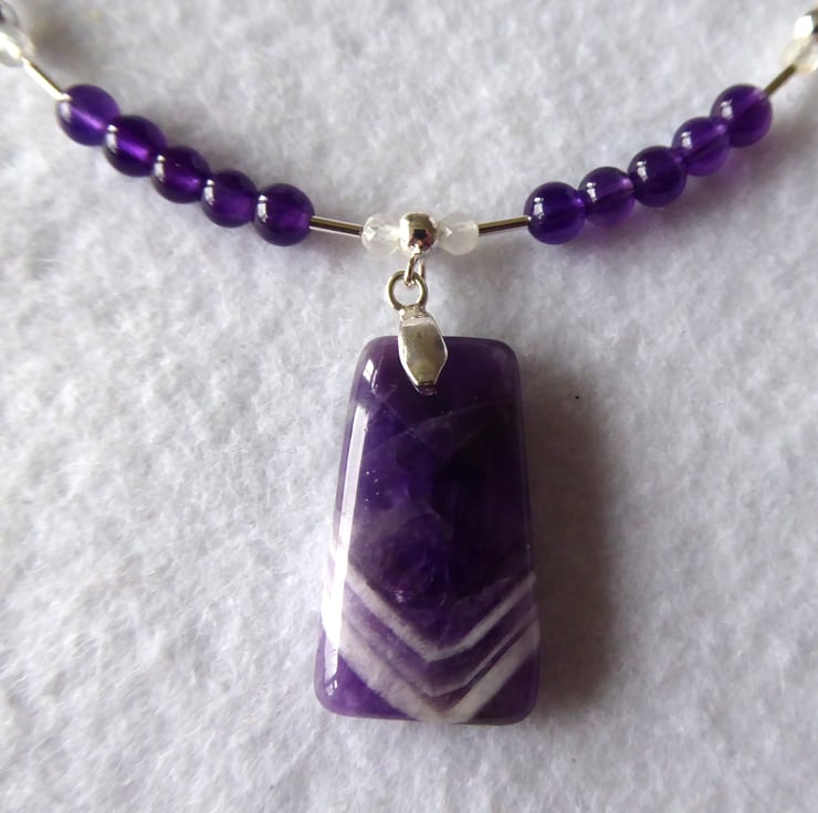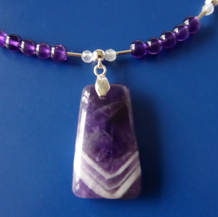 Chevron Amethyst Necklace accented with AA grade 4mm amethyst and AA grade 3mm faceted moonstone and sterling silver. Perfect for a Pisces or February Birthday,