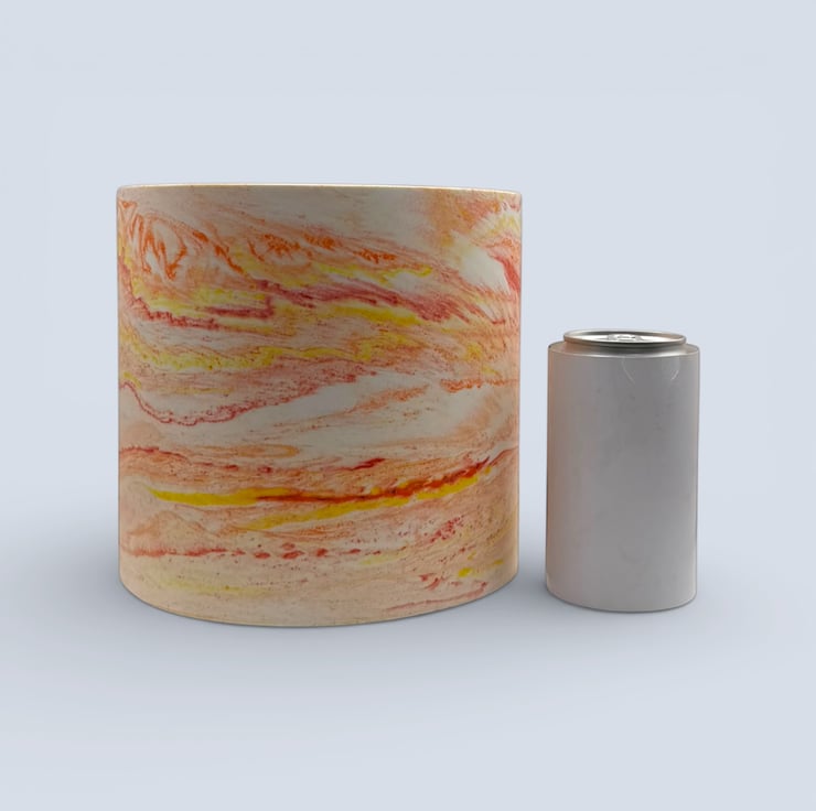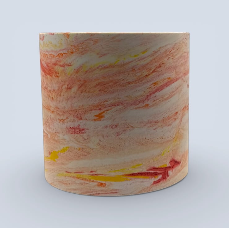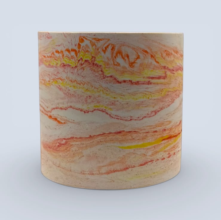 This sunrise-marbled plant pot was inspired by early morning light, when warm reds, oranges and yellows blend softly together before the day fully begins. The flowing colours and gentle movement in the marbling make each piece feel calm, uplifting and full of quiet warmth, designed to bring a small moment of brightness into everyday spaces.