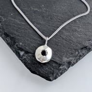 3 mm Iolite cabochon cut gems set into a secure bezel sterling silver