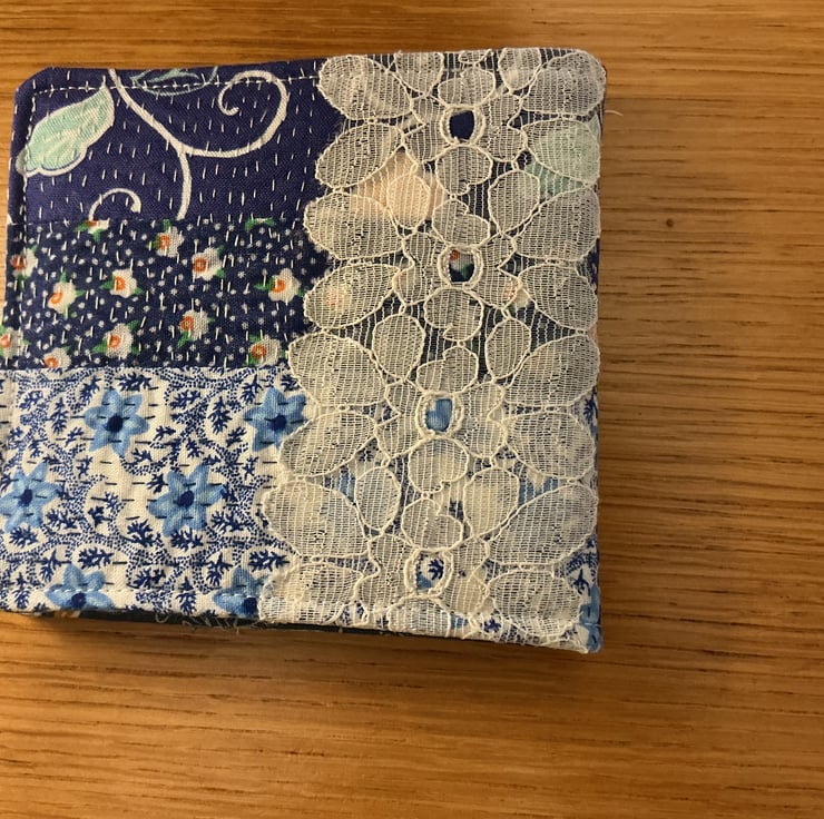 I have lots of scraps to use up, I have used ‘slow stitching’ for the cover to this little book with lace added to the design.