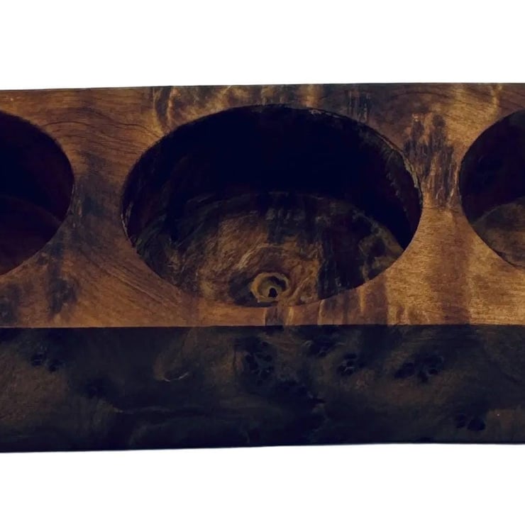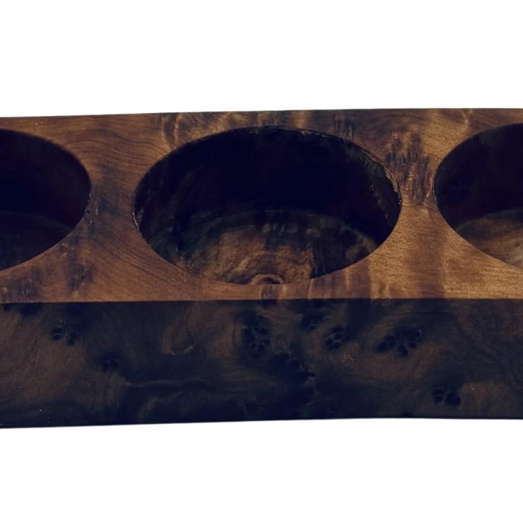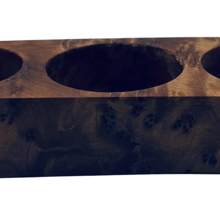 Crafted from rare Thuya burl wood, this elegant set of three tea lights brings a touch of natural artistry to your space. Each piece showcases unique grain patterns, offering a warm, sophisticated ambiance perfect for intimate evenings or refined d cor. The rich tones and smooth finish highlight the wood s graceful character, making these tea lights a timeless addition to any setting.