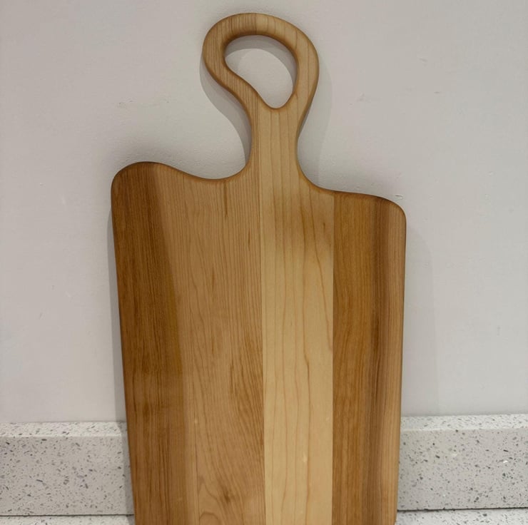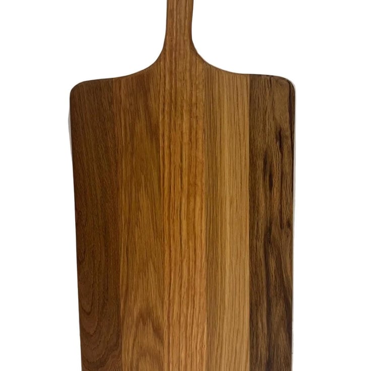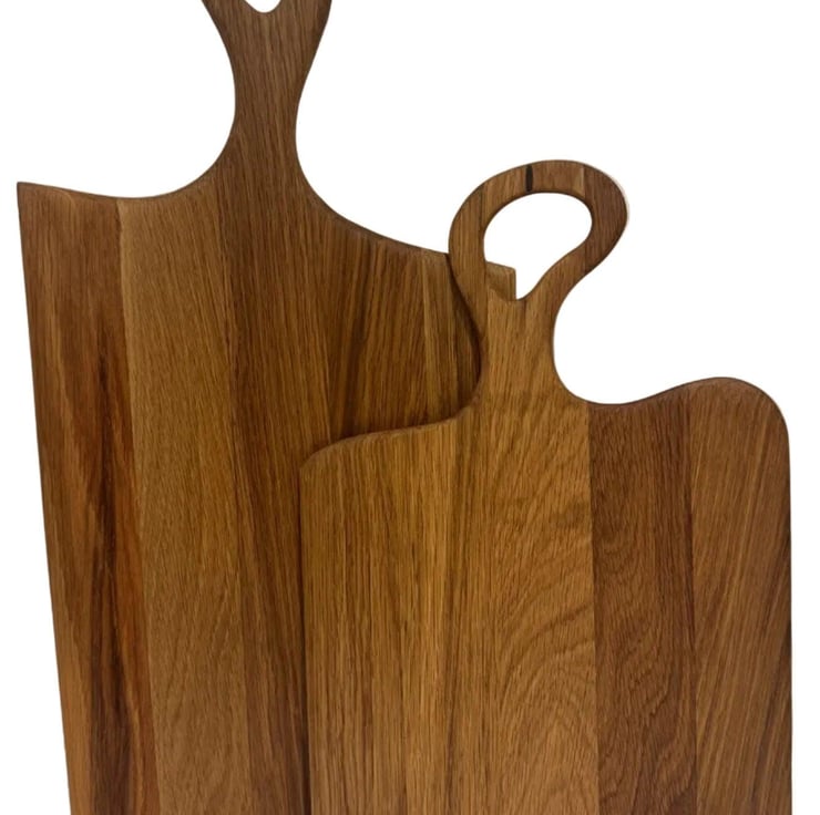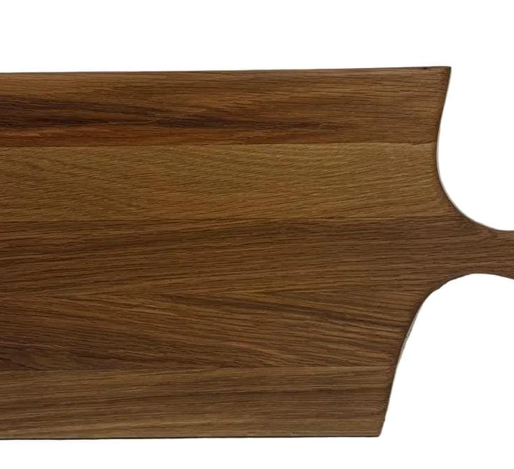 Crafted from natural oak, ash or maple these charcuterie boards strikes the perfect balance between form and function. Providing ample room for curating an impressive spread of premium charcuterie and accompaniments. The integrated handle ensures confident handling and elegant presentation, whilst the food-safe mineral oil and wax finish preserves the wood's inherent character and durability for discerning hosts.