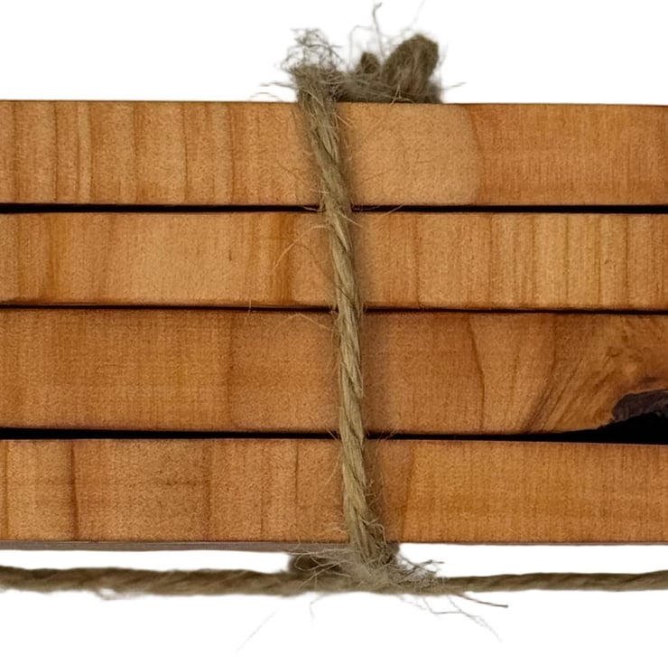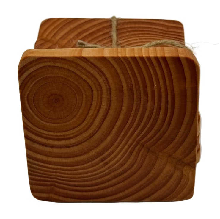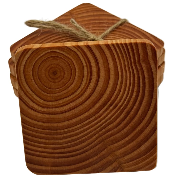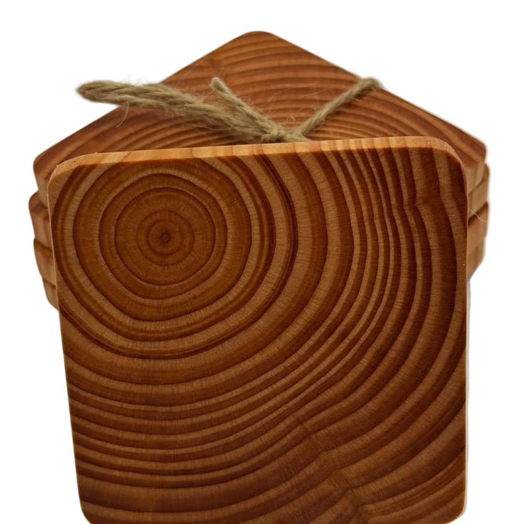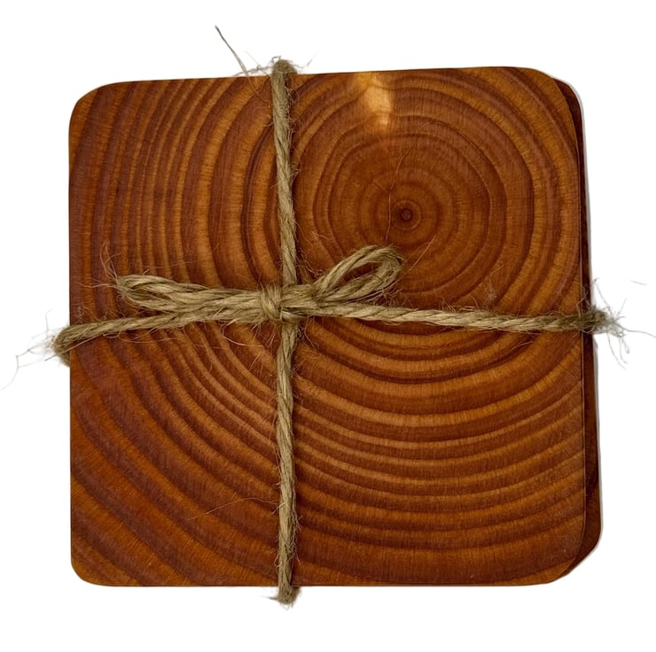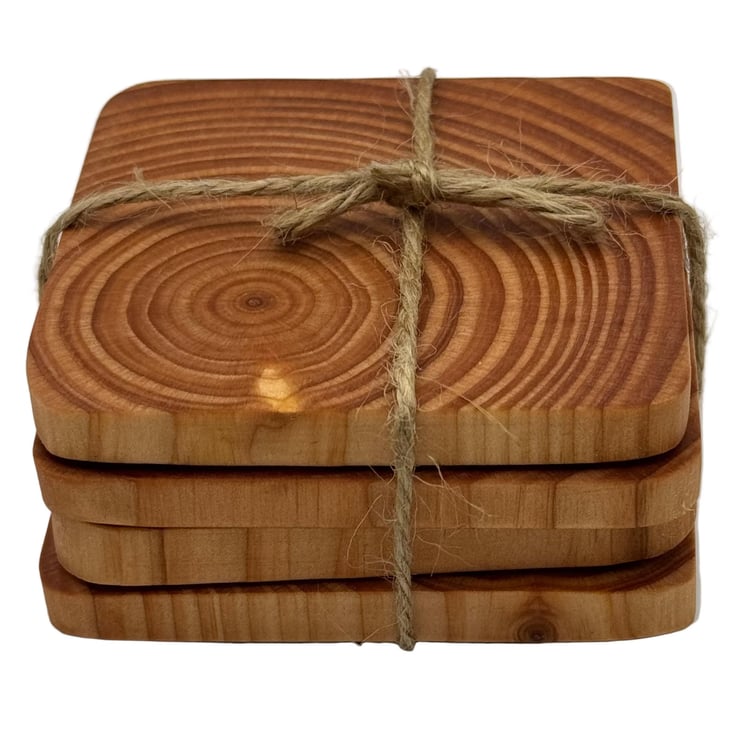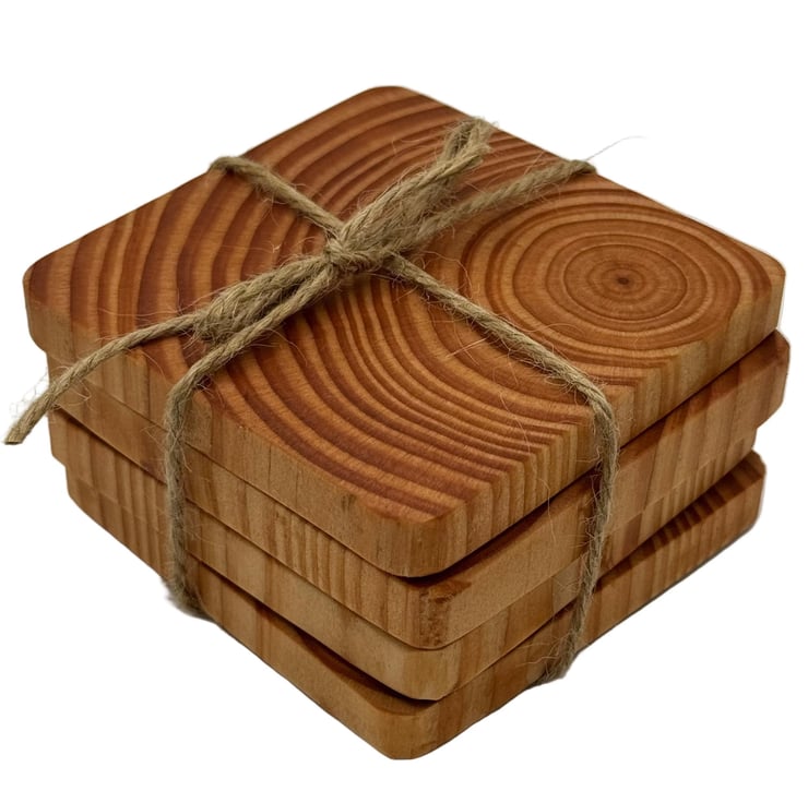 Crafted from authentic British Larch, this set of 4 rustic end grain coasters brings natural charm to your home. Measuring approximately 90-95mm square and 9-10mm thick for large and 7-8mm thick for medium, each coaster s unique grains and textures protect your surfaces while adding a warm, organic touch to your decor. Perfect for everyday use or as a thoughtful gift, these durable coasters combine practicality with timeless rustic appeal.