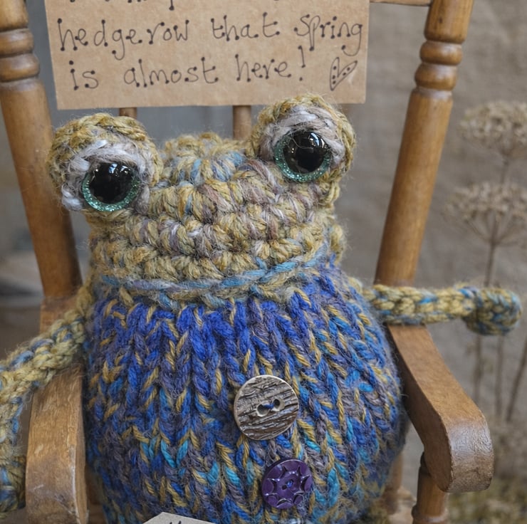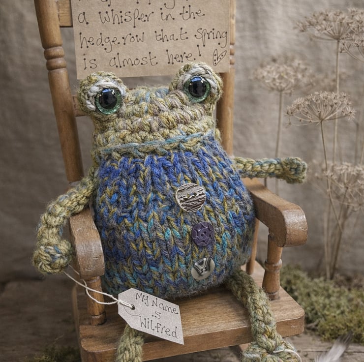 Each frog is unique due to the nature of hand-knitting - Wilfred will be yours and yours alone.
