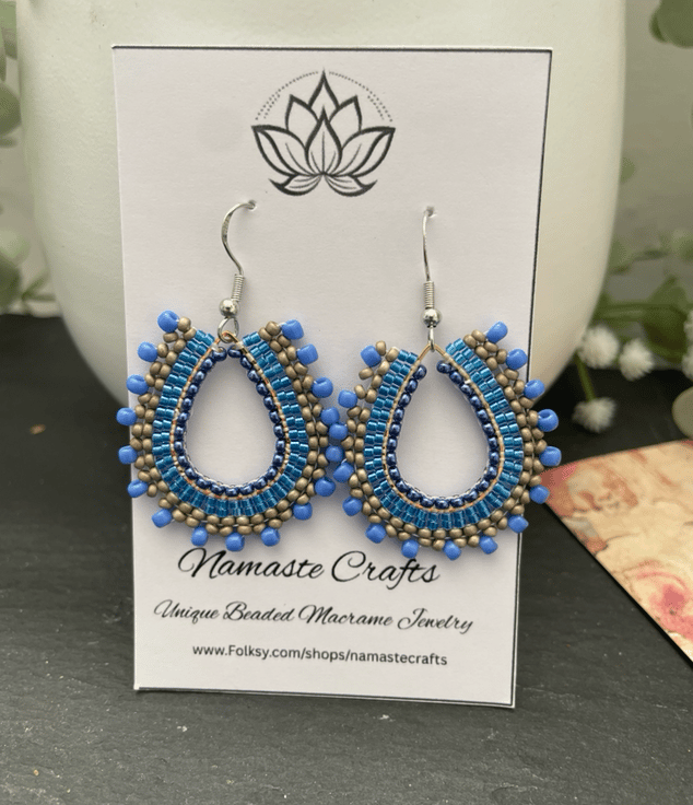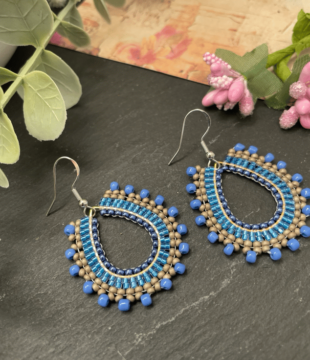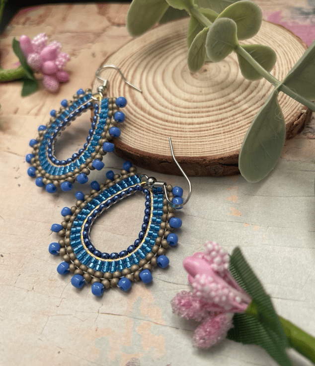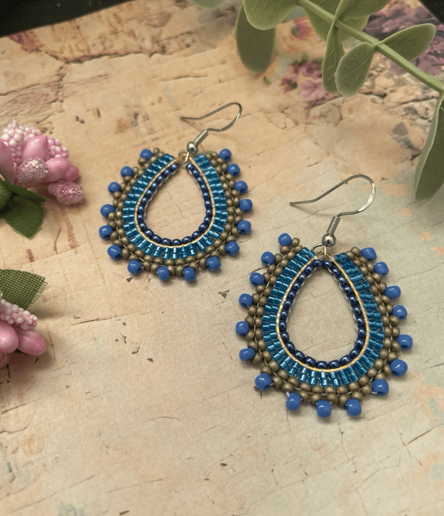 Parallel rows of Czech glass seed beads have been hand woven to outline the silver teardrop shape creating a beautiful pair of earrings that encompasses handcrafted, one-of-a-kind beauty ready to gift to that special person or to keep.