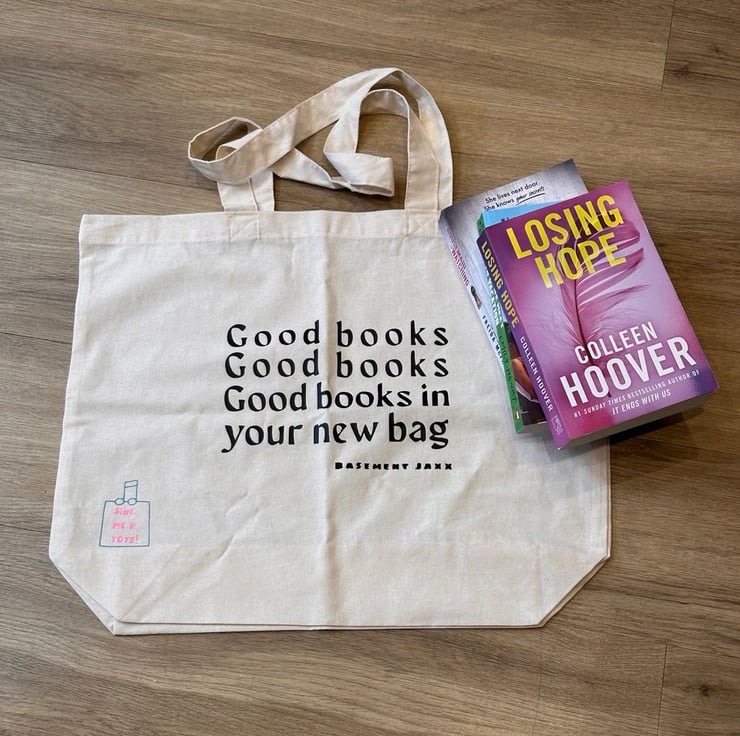Cotton Tote Book Bag featuring a Basement Jaxx Song Pun