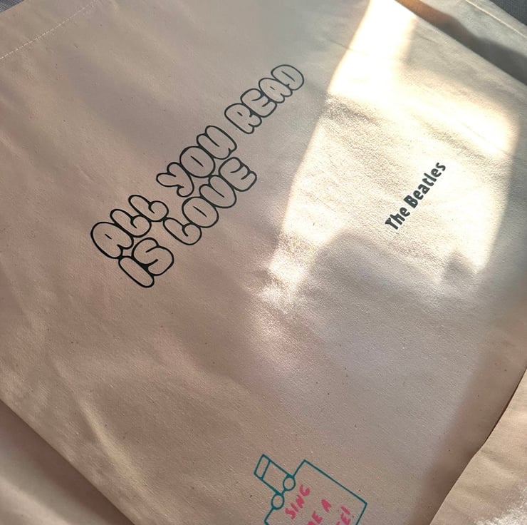 Thank you for looking at our hand crafted cotton tote bags featuring a song pun from a popular Beatles song.