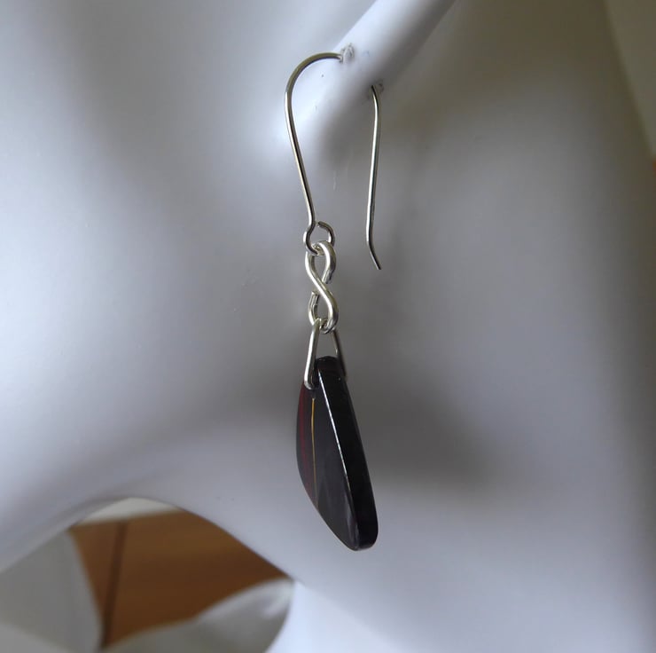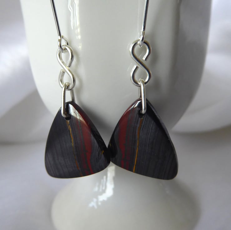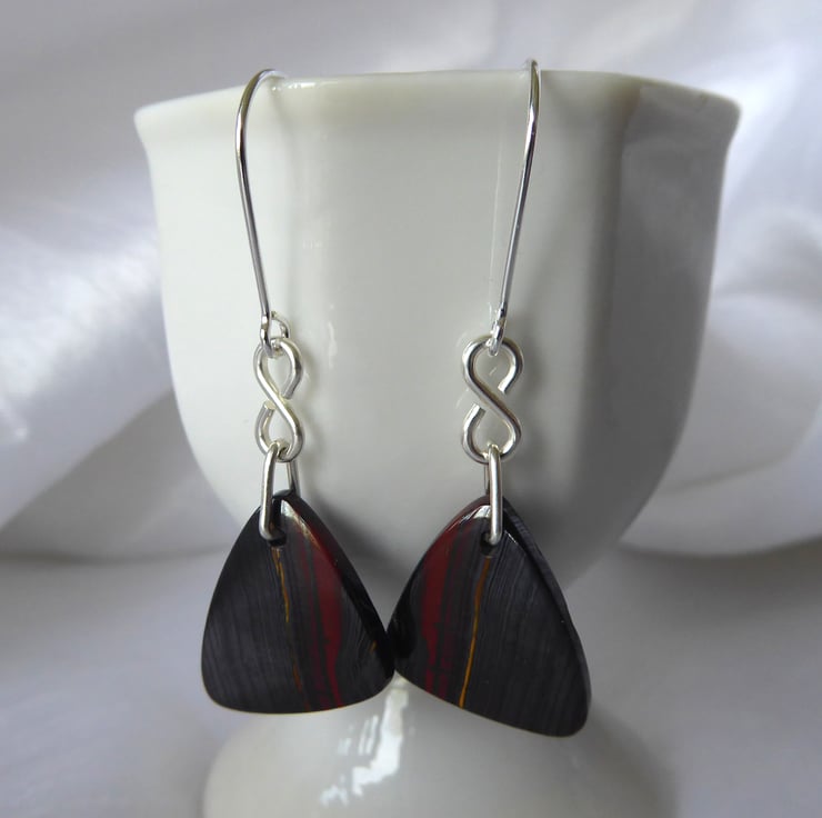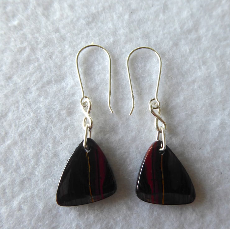 Sterling Silver and Iron Tiger Eye Triangular Earrings with Vertical Stripes