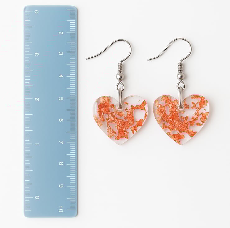 Rose Gold Leaf Heart Resin Earrings – Lightweight Romantic Jewellery – Handmade