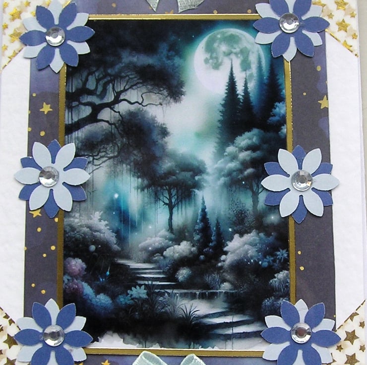 Blue Twilight Moon - Hand Crafted 3D Decoupage Card - Blank 3122