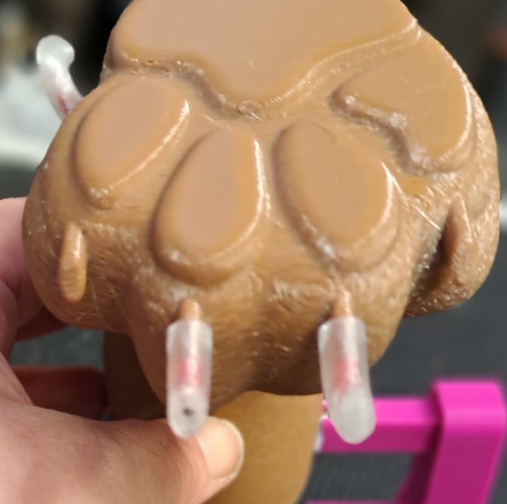 3d printed PETG filament, recommend eye protection when cutting claws and wearing a mask if drilling claws. Not a toy. Keep out of reach of children and pets