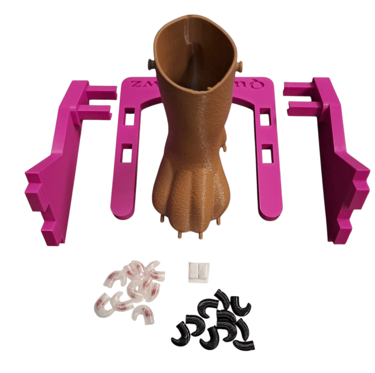 The first of it’s kind. Quickclawz had been initially designed a few years ago by Hazel in conjunction with D2M design2manufacture.co.uk It was then modified for 3D printing by engineering friend Colin and Kevin and Penny of Pawfect Grip dryer handles. It is a training aid to help owners, groomers, vet techs etc learn how to cut dog’s nails safely and confidently.