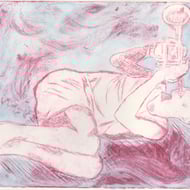 A4 drypoint etching double print with chine collé. One-of-a-kind, unique original.