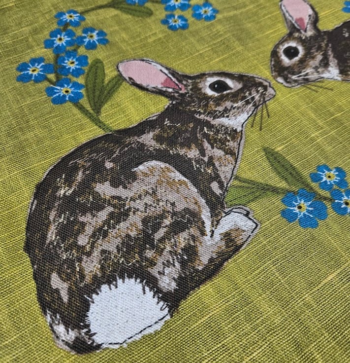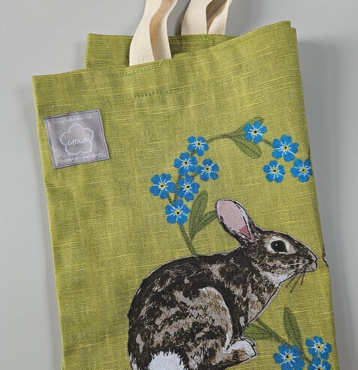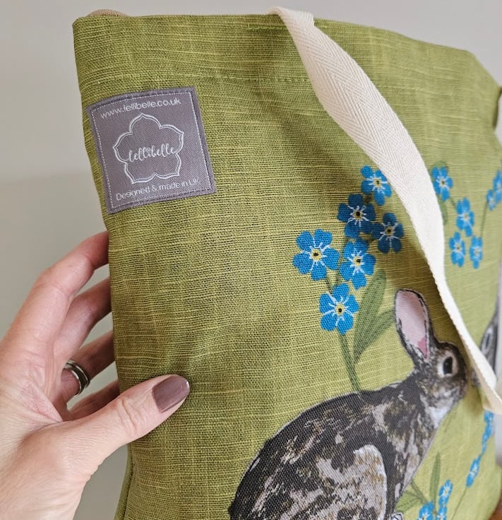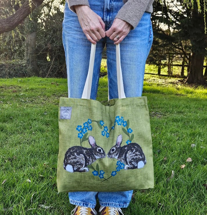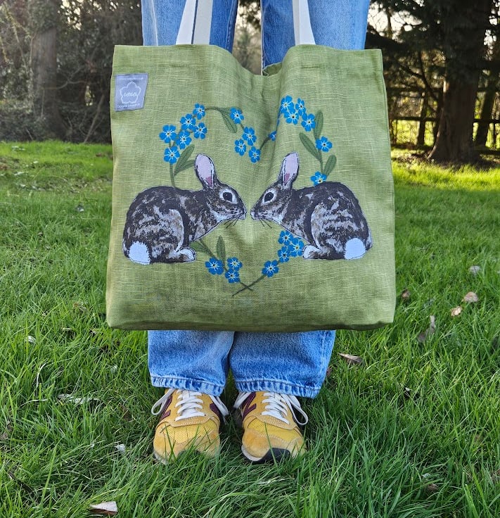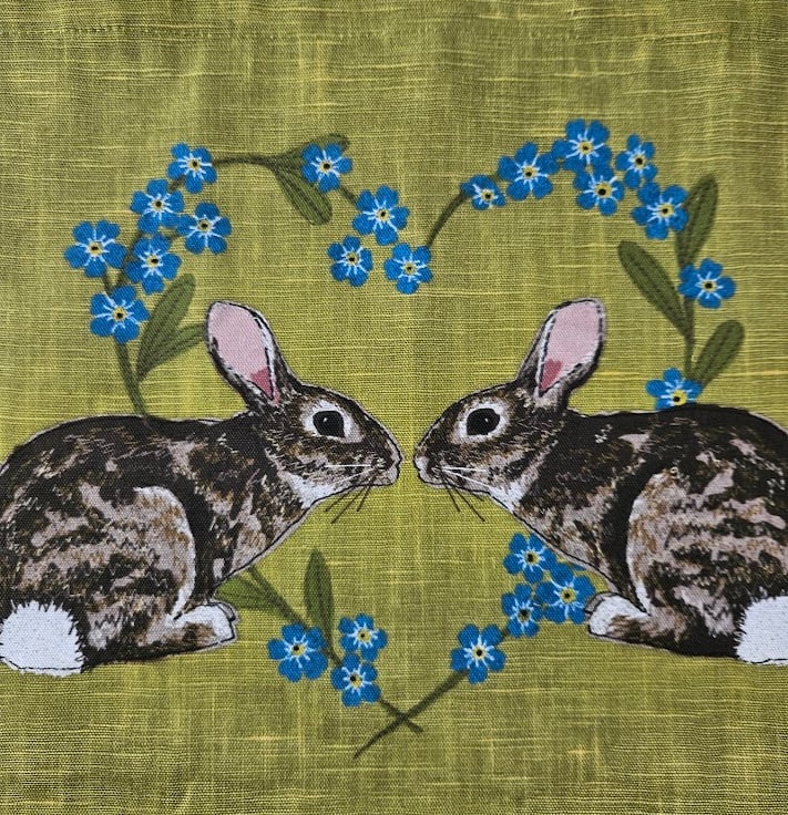 The printed fabric features my 'Rabbits & Forget-me-not heart' design.