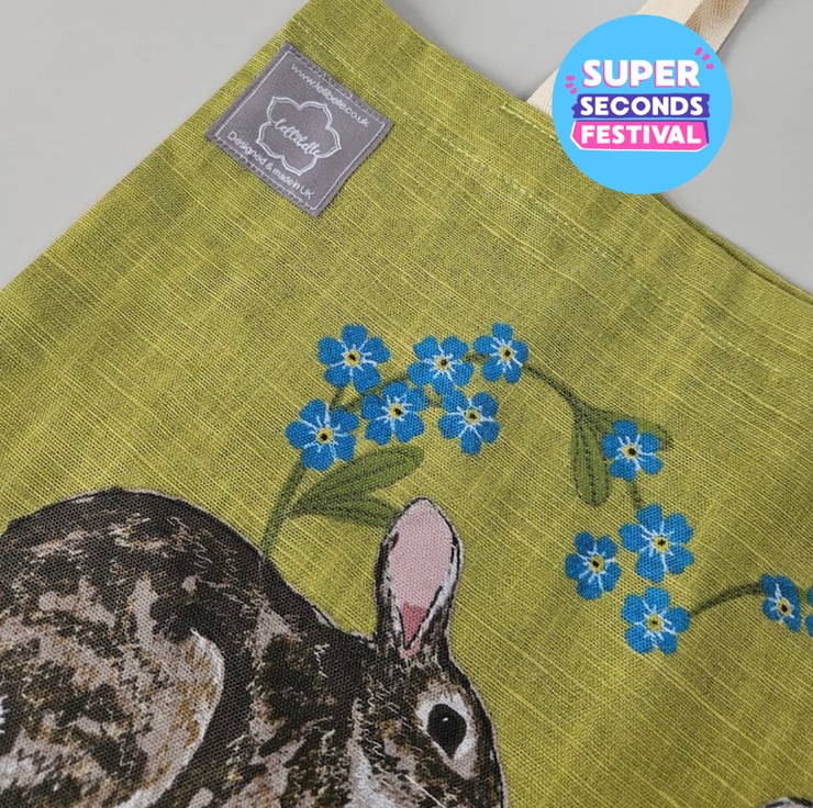 Super Seconds Festival sale - these popular tote bags were printed on a white organic cotton rather than the usual natural, slightly altering the green background colour. They are perfect in every other way! They are reduced by 50% from their original price.