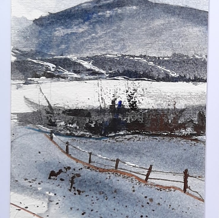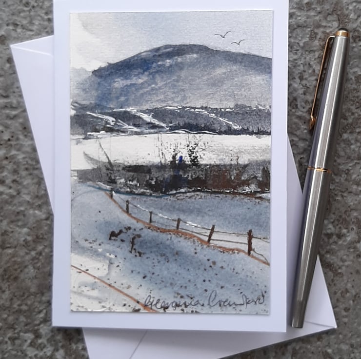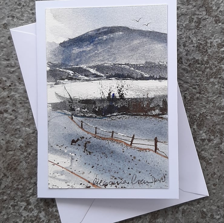 Handpainted Watercolour, mounted onto hand cut, soft-white Card.