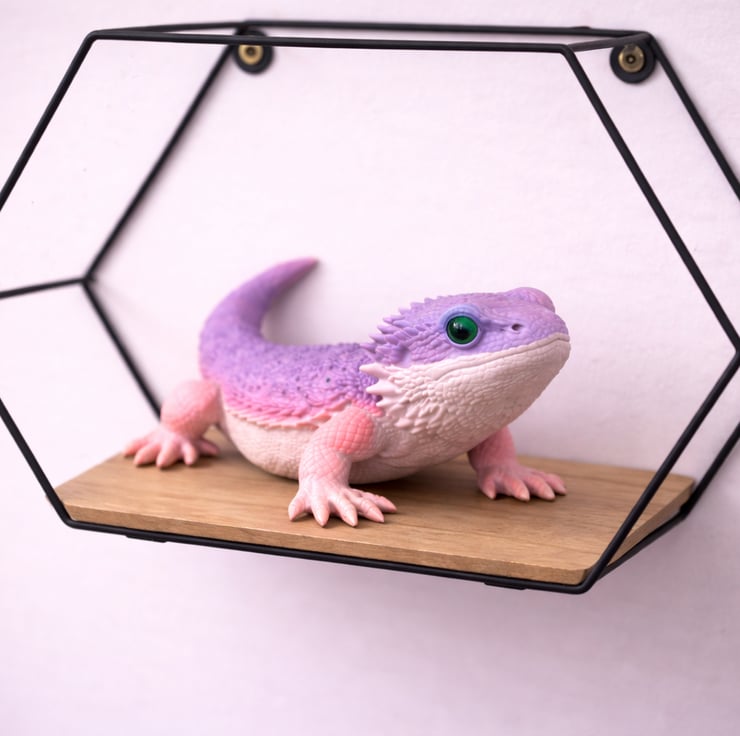 Each piece is carefully handmade using precision 3D printing technology and then hand finished for a clean, smooth appearance. The sculpted details are designed to highlight the natural shape of the bearded dragon while keeping a playful and decorative feel. The finish is intentionally simple and bold, giving it a handcrafted look rather than a mass produced appearance.