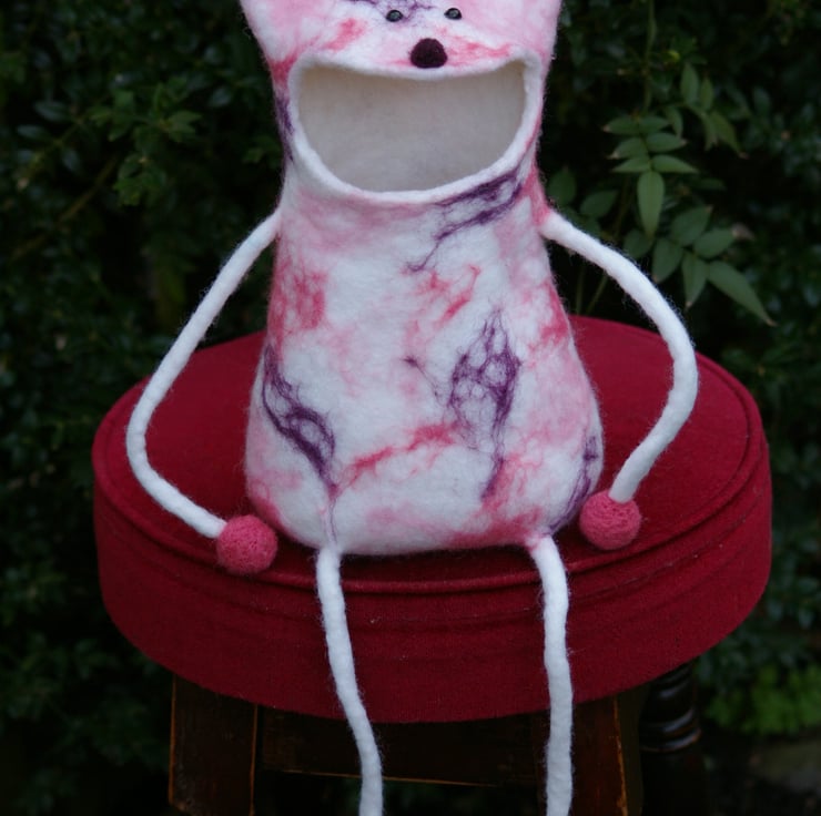A 29 cm tall handcrafted cat made from natural felted wool A charming decor piece with a hidden storage space for jewelry and little treasures Perfect as a unique gift or creative gift wrapping