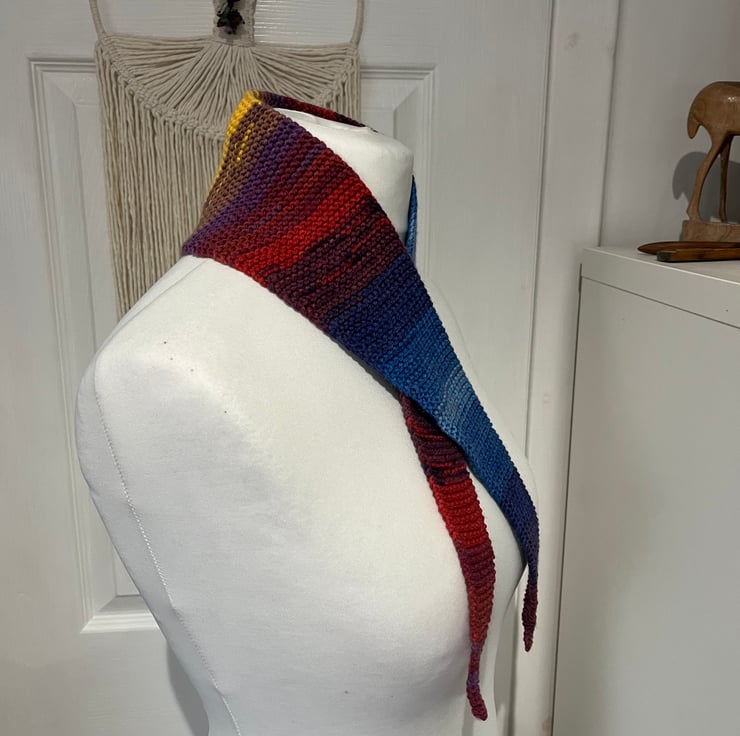 This is a new style neckerchief, so easy to roll up and add to your bag!All items are handknitted, so no two pieces are the same. I restock monthly all pieces are a one off.