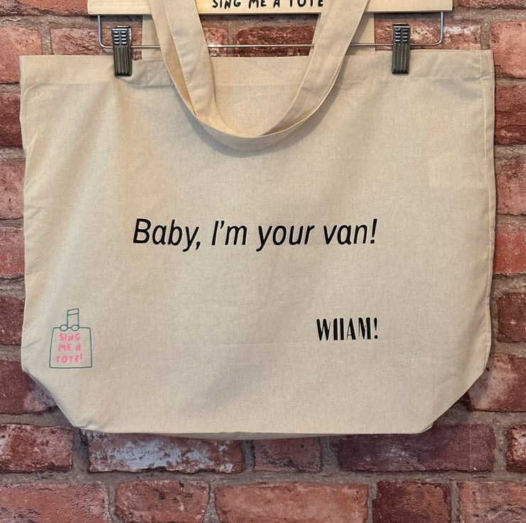 Thank you for looking at our hand crafted cotton tote bags featuring a song pun from a popular Wham! song.