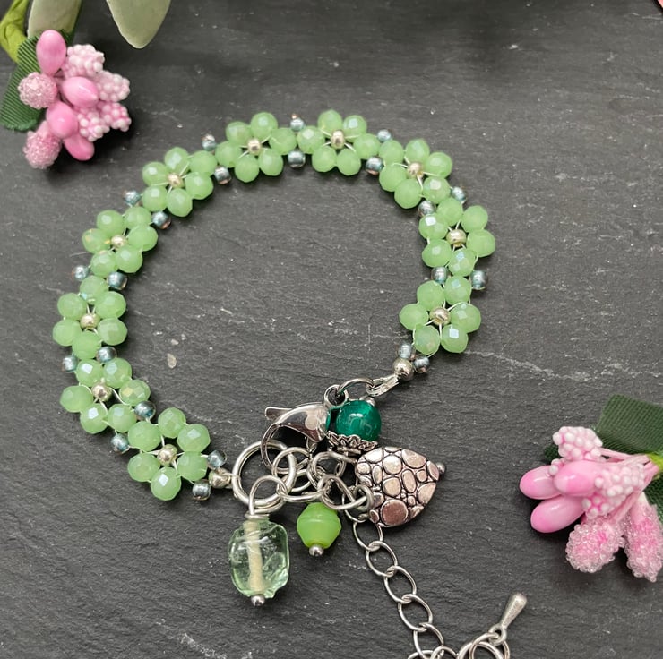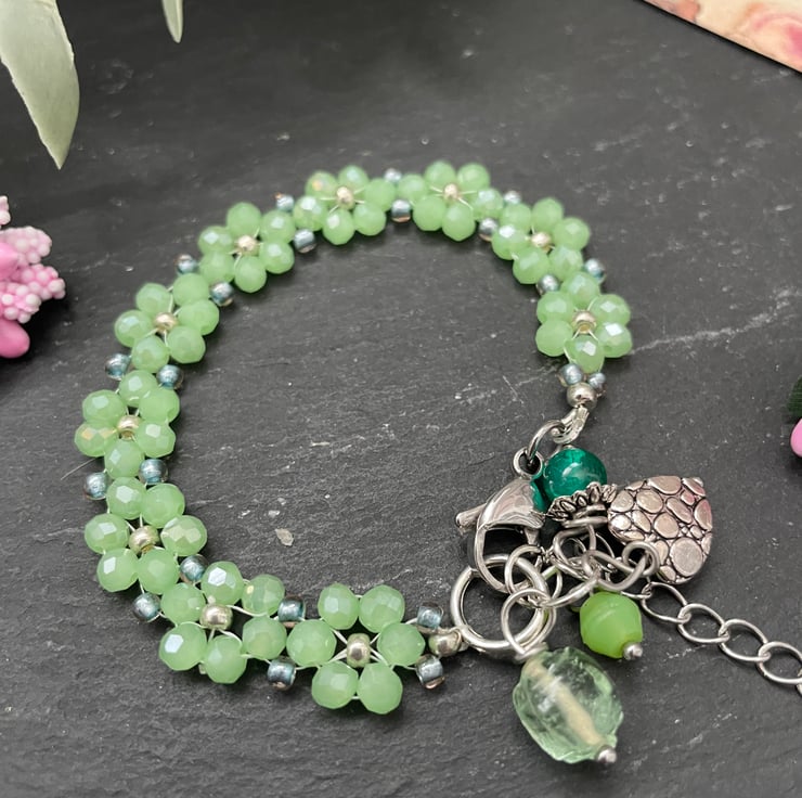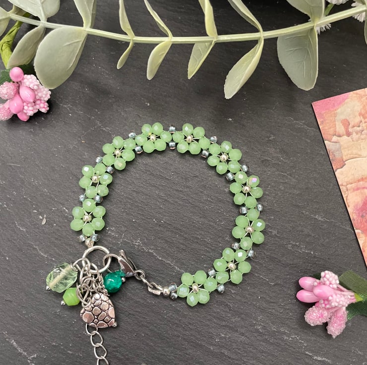 Lightweight yet eye-catching, this bracelet is perfect for everyday wear or as a thoughtful handmade gift for someone who loves floral details and fresh, botanical-inspired jewellery.