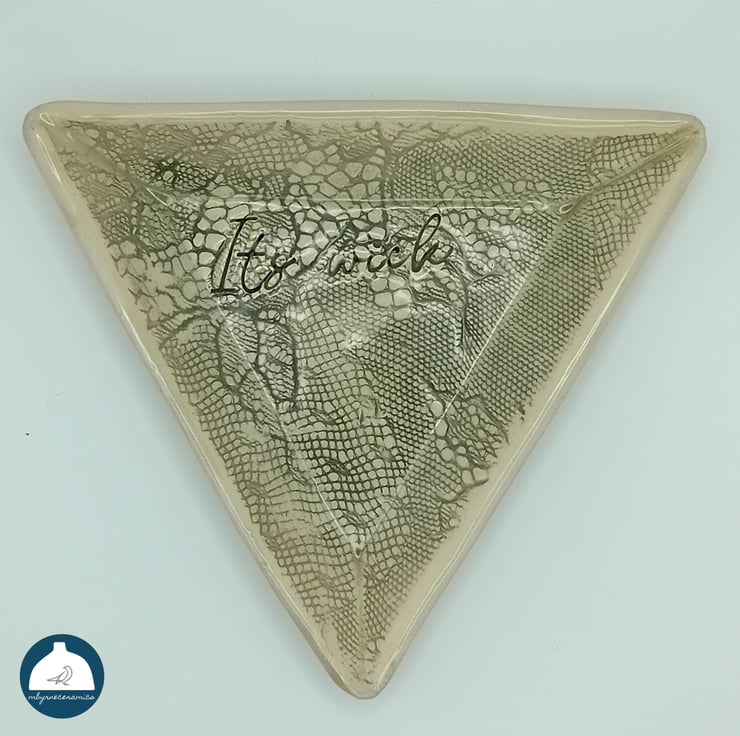 As this is a handmade item the dish has a random placement of lace so may appear slightly different from the image and in so doing creating a unique item.