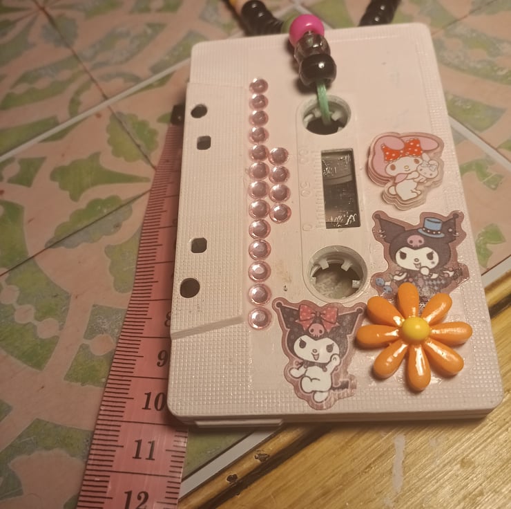 Handmade pony beads necklace made by me , using an upcycled retro cassette tapes as the pendant.