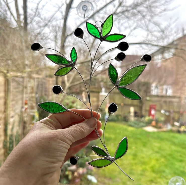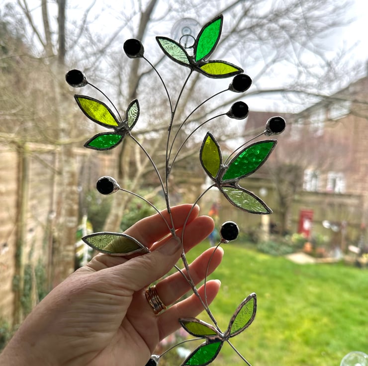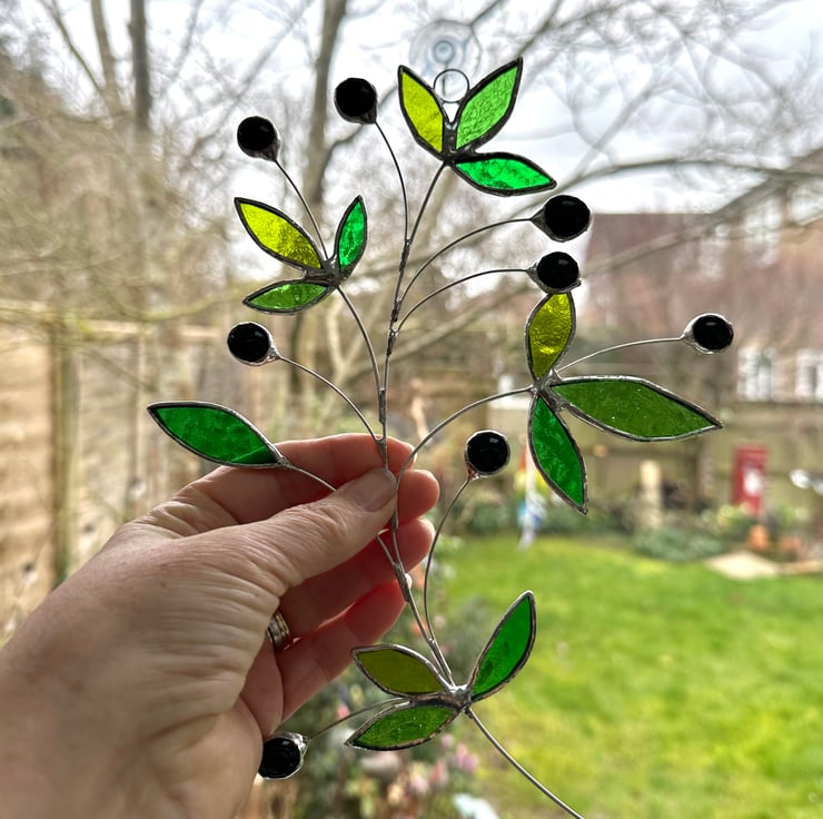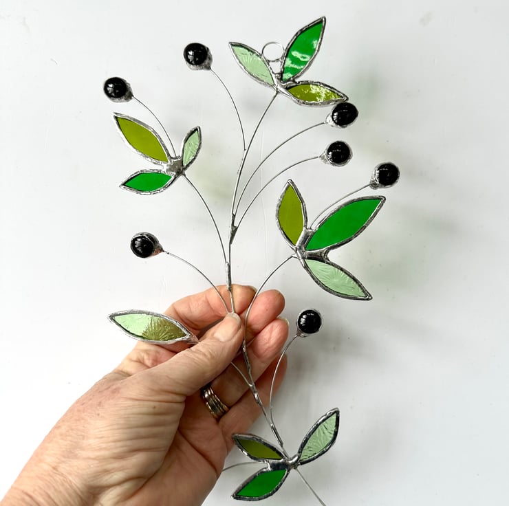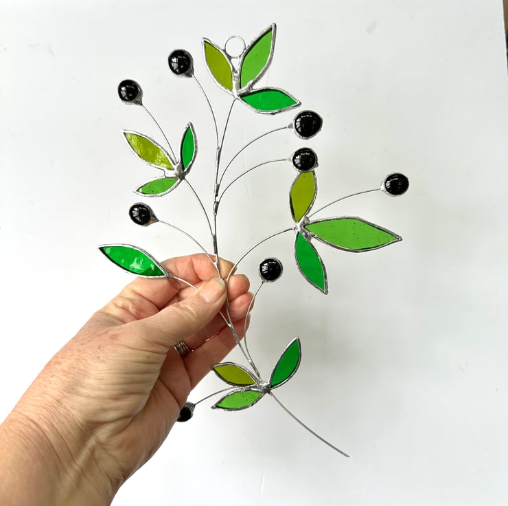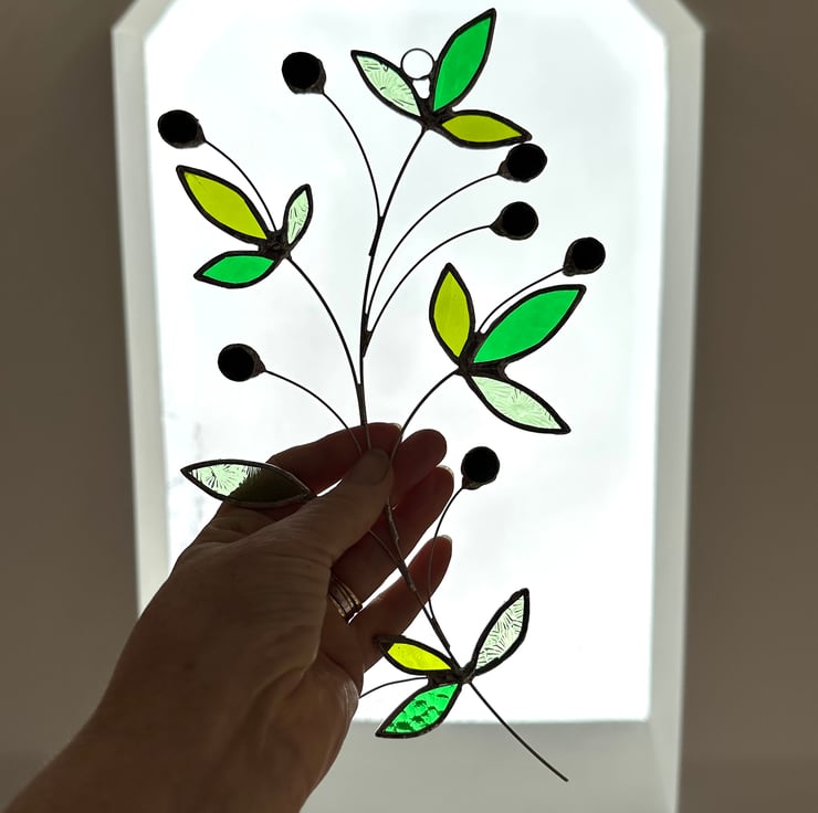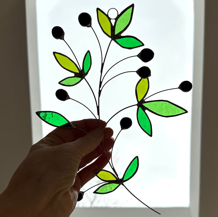 Olive branch suncatcher made in stained glass by Carole’s Glass.
