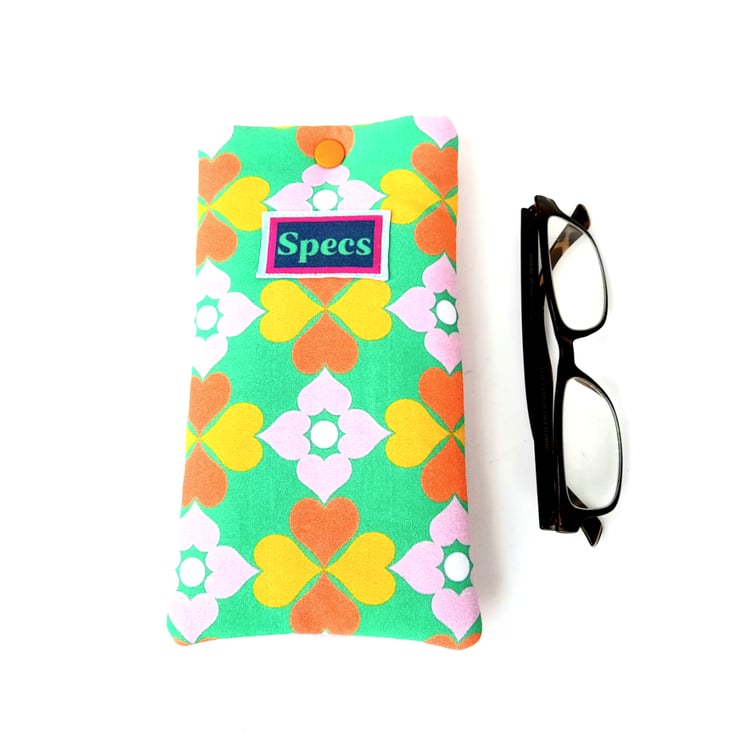 It has been handmade here in Scotland and includes an orange snap closure to keep glasses secure inside. Fabrics are good quality 100% cotton, hand wash in cool water.