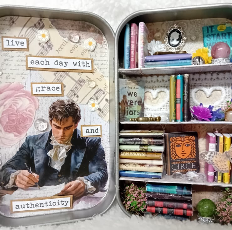 A love of classical literature and period dramas I have crafted a pride and prejudice tin library for your enjoyment.