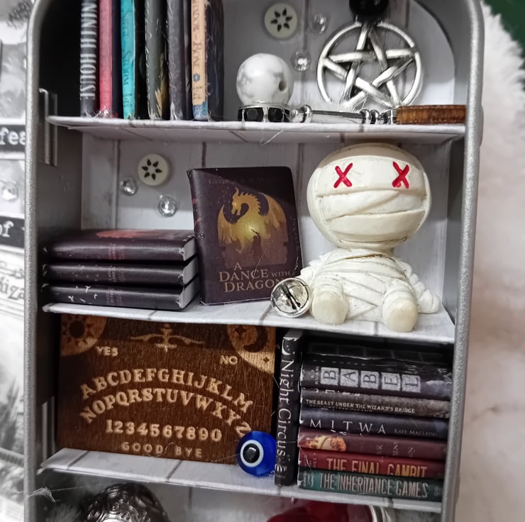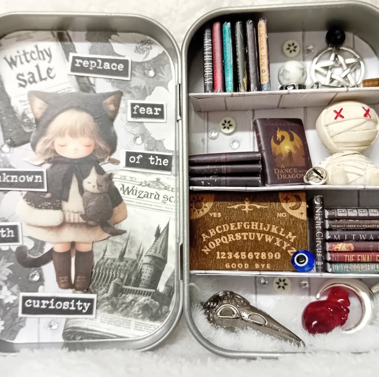Small tin library, handcrafted, totally unique and will never be repeated. Perfect for all your book lovers needs.