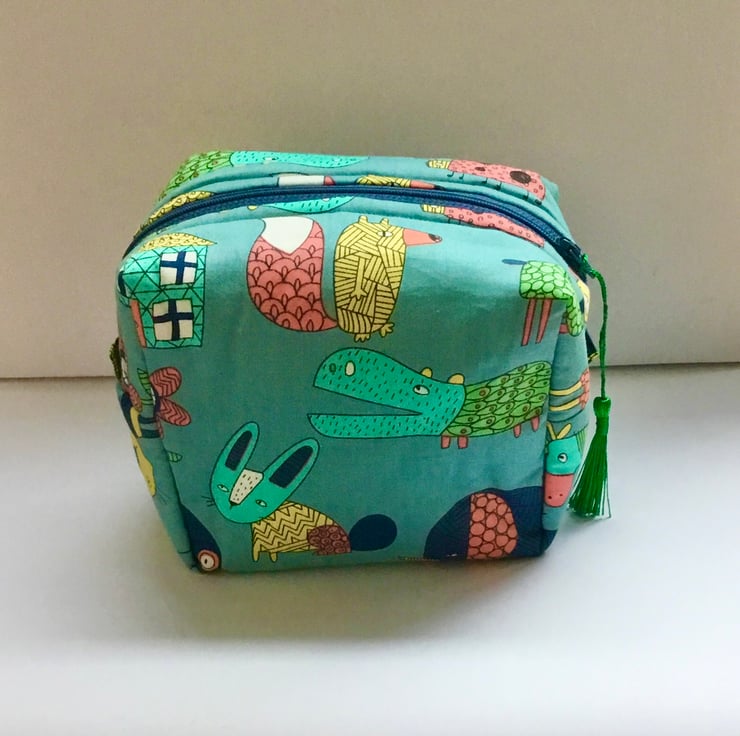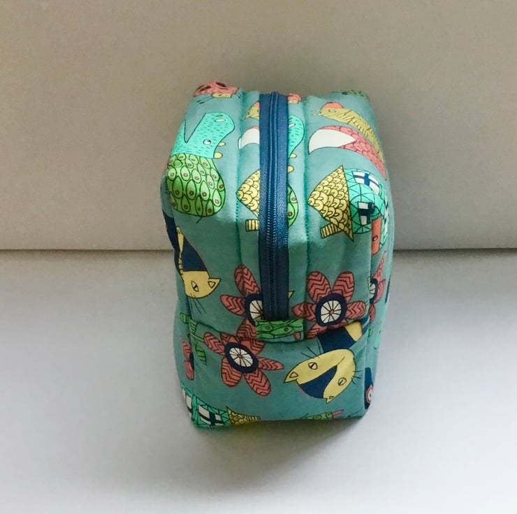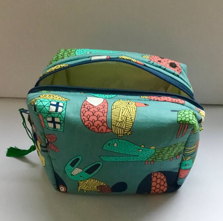 The lining is a quilted cream cotton fabric and a contrasting zipper.