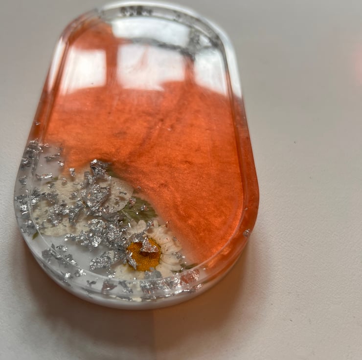 Handmade Resin Trinket Tray – Coral & Silver Leaf Floral Design