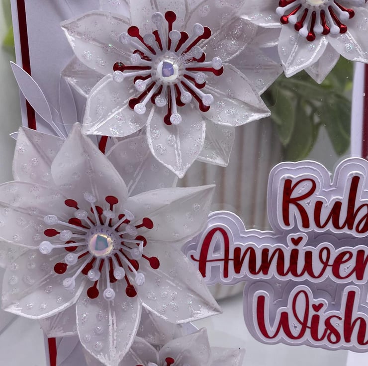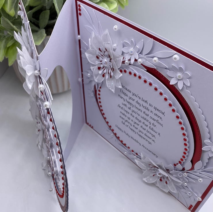 A stunning Ruby anniversary card - celebrating 40 years of married bliss, with a sentiment included within the card.