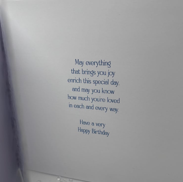 The silver writing has been designed and cut using a cricut machine, with a series of matting and layering making a birthday sentiment. If required there is the option of personalising this with an age or name in the same colour as the Happy Birthday. (But NOT to the verse)