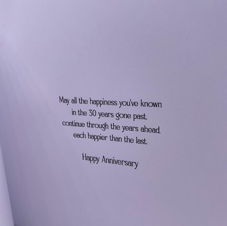 A stunning Pearl anniversary card - celebrating 30 years of marriage, with a sentiment included.