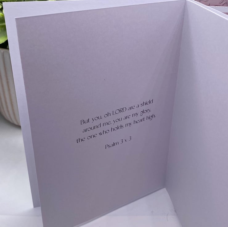 Size of the card is 7" x 5" The scripture verse is on the left hand side and the right hand side is blank for your own message.