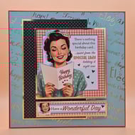 A vibrant, retro inspired handmade greeting card that blends bold pop art style with modern craft details.