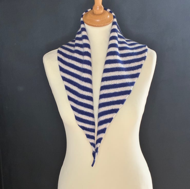 A triangular shaped scarf made from 100% super-soft, fine lambswool, gently felted for a luxurious handle. Designed to look smart casual and give your outfit that pop of colour. Perfect for the transitional time between winter and spring, or into summer if you feel the chill. Length 108 cm (point to point) x 38cm wide (at widest point).