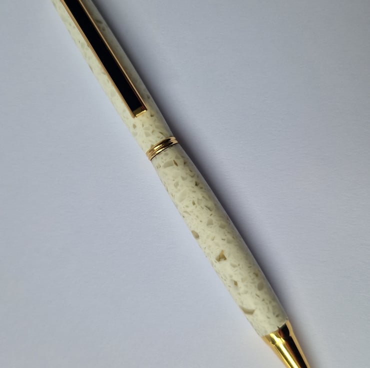 Corian Ballpoint Pen – Gold and Black Hardware – Lathe Turned Pen