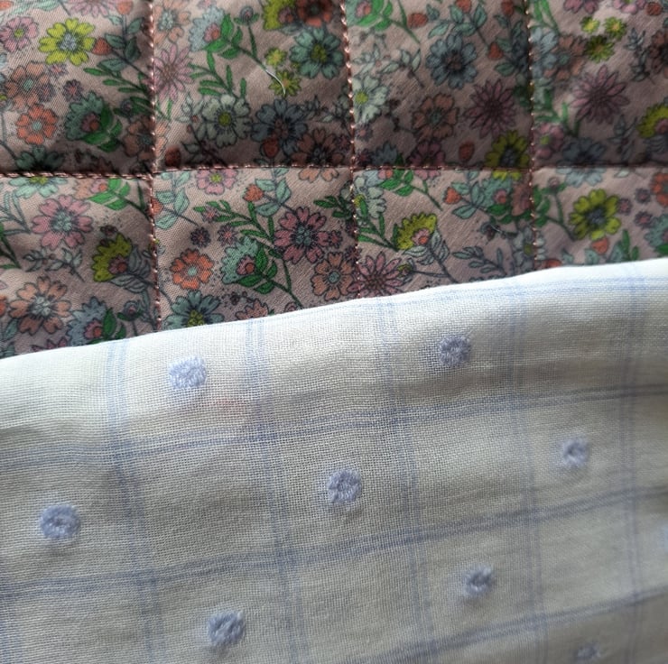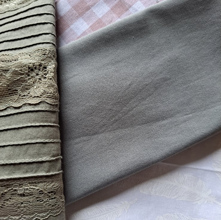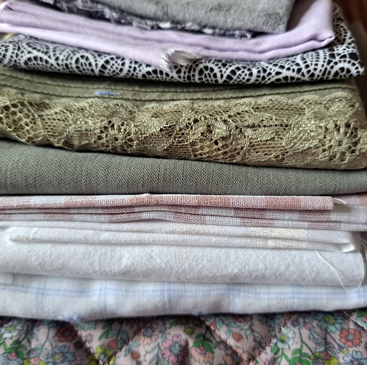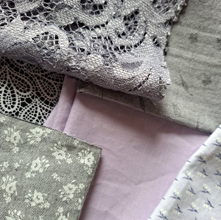 A dreamy selection of vintage pieces, remnants and scraps which go together like the hazy contents of an old linen cupboard. This 12-strong bundle has a bit of everything - lace dress panels, new cotton remnants, some gorgeous vintage French lavender gauze and even an off-cut of quilted floral nylon. I can see this lot being used in toy-making or for textile art.