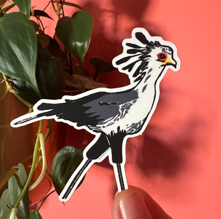 Set of 5 vinyl stickers including: Pepper the cat, gannets, nautilus, lobster and secretary bird.