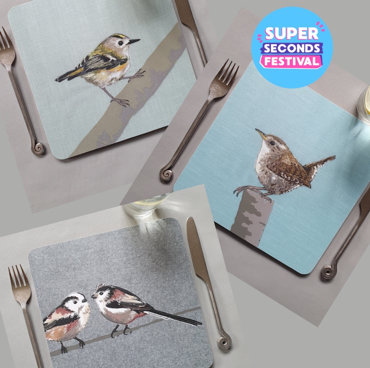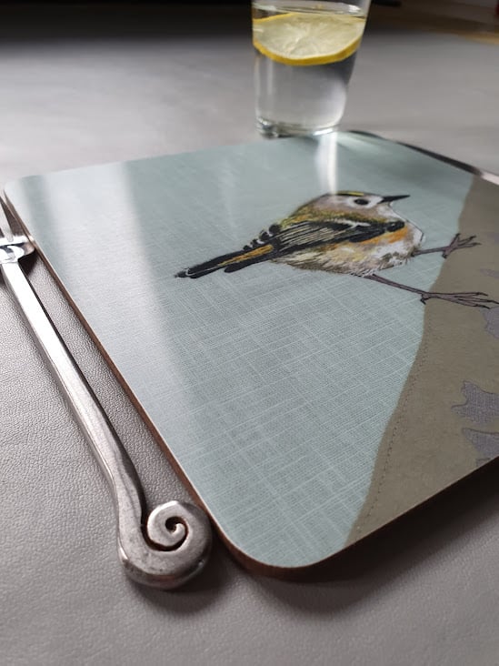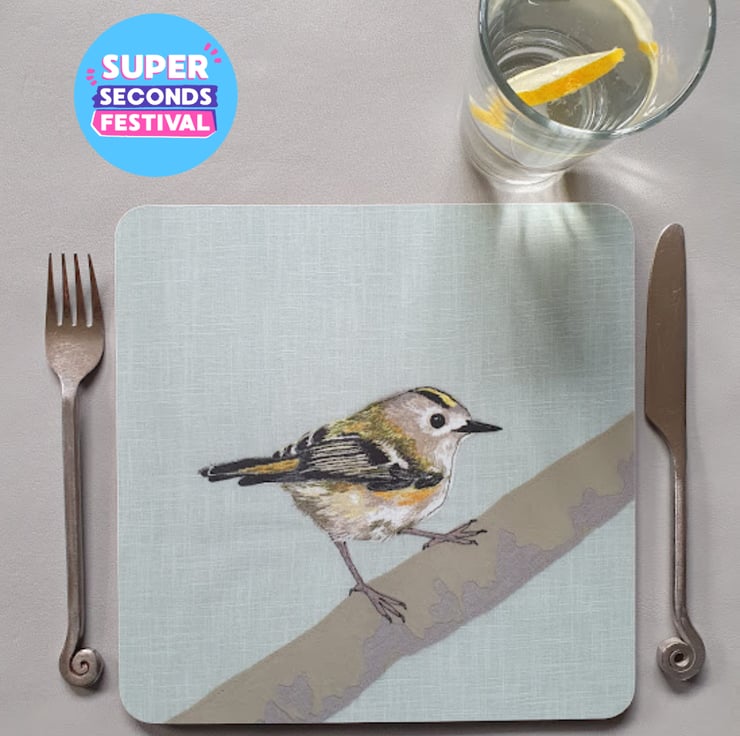 Super Seconds Festival sale - Goldcrest design - Garden bird melamine placemats - 40% off original price.